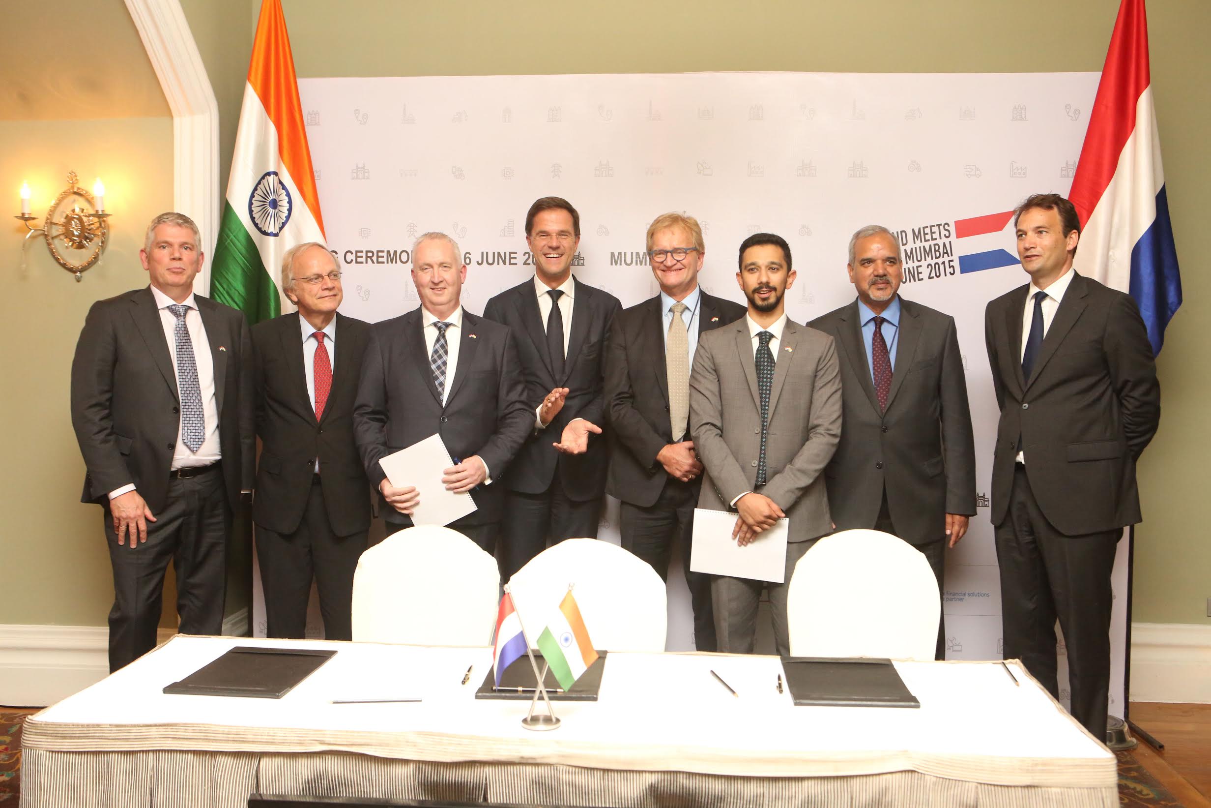 In het bijzijn van minister-president Mark Rutte tekenen Mr. Joshua Roa van Pest Control India, Martin van der Bent van de NVPB en Ronald van Grunsven van PestWatcher het Memorandum of Understanding voor duurzaam plaagdiermanagement.